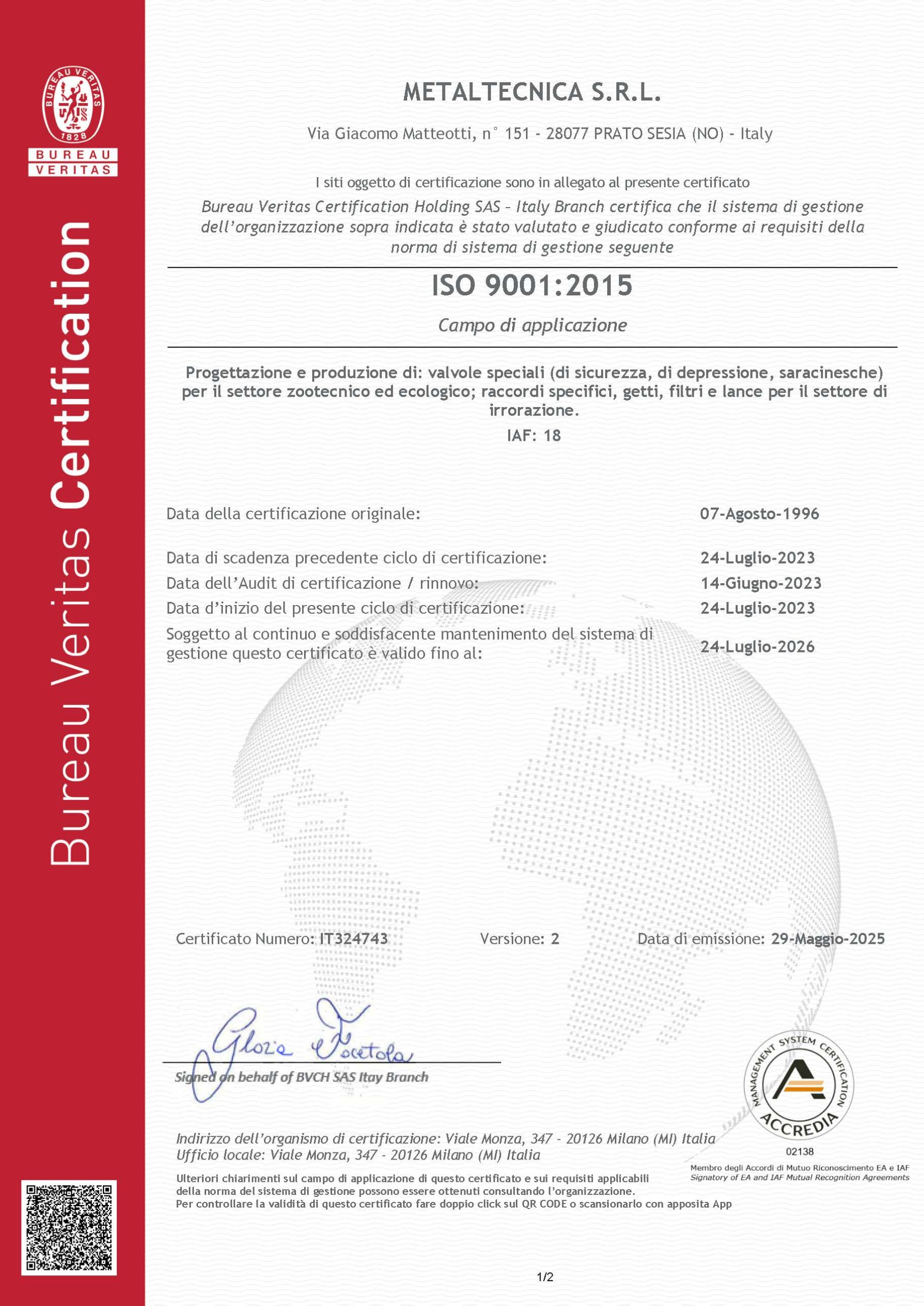 Over the years, we have updated our Quality System -first in 2000, then in 2008- in line with the evolution of ISO standards, with the goal of ensuring increasingly efficient processes and full customer satisfaction.