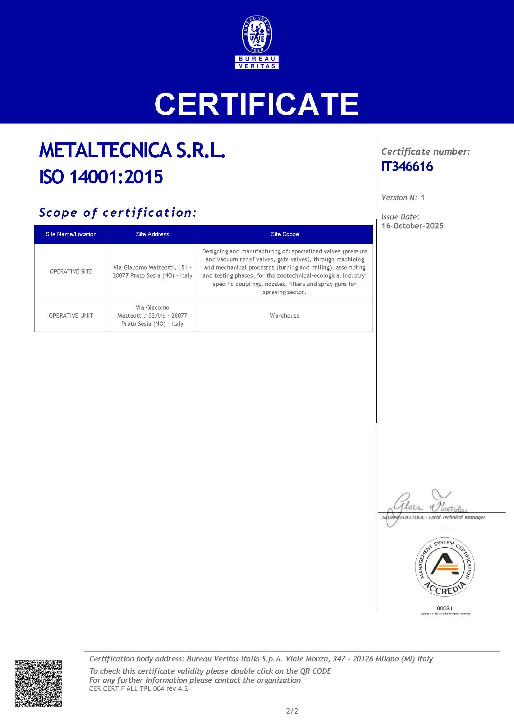 In October, we obtained ISO 14001 certification, issued by Bureau Veritas, one of the most authoritative certification bodies worldwide. This achievement reflects our concrete commitment to environmental management and to reducing the impact of our production activities.